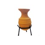 Dale un toque cálido y auténtico a tus espacios con esta hermosa ánfora de estilo rústico en color amarillo con soporte de hierro forjado color negro.