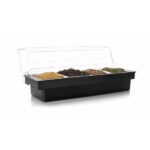 El contenedor de 4 condimentos es un utensilio básico y de gran utilidad para cualquier buffet y cocina.