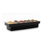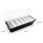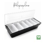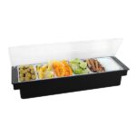 El contenedor de 6 condimentos es un utensilio básico y de gran utilidad para cualquier buffet y cocina.