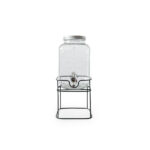 DISPENSADOR BEBIDA CRISTAL 4L CON GRIFO Y SOPORTE METAL RUSTIK «LA MEDITERRÁNEA»