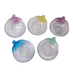 Set de 5 cuencos de cristal bicolor con formas inspiradas en diferentes frutas.
