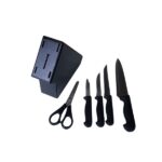 JUEGO COCINA CUCHILLOS 5 PIEZAS INOX CON SOPORTE NEGRO QUTTIN