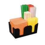 Cuenta con compartimentos especialmente diseñados para mantener las servilletas de cóctel de tamaño 20×20 y los utensilios de coctelería o pajitas bien organizados y al alcance de la mano.