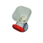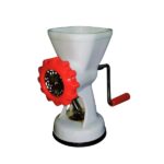 La picadora manual de carne está fabricada en plástico resistente de alta calidad (cuerpo en blanco y detalles en rojo), combinando ligereza, durabilidad y fácil limpieza.
