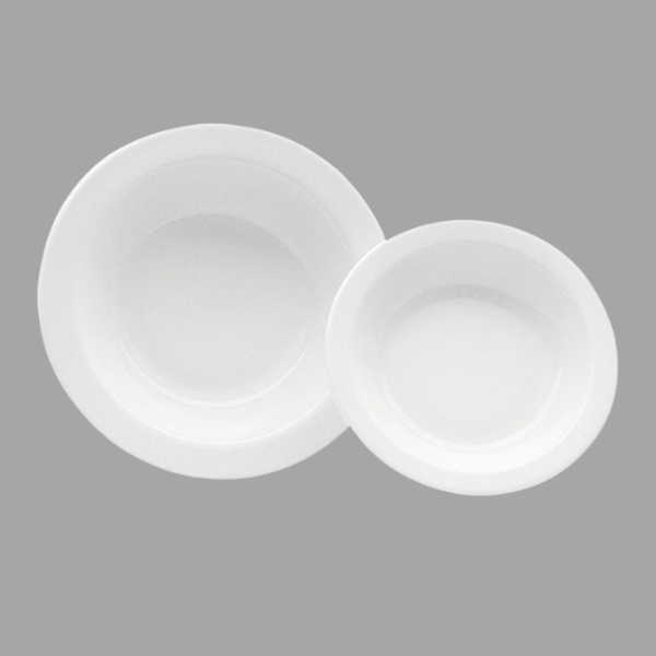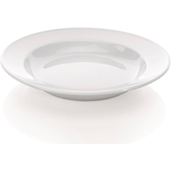 Este plato de porcelana tipo copa, de 14 cm de diámetro y color blanco, combina elegancia y versatilidad en una pieza ideal para servir sopas, cremas, pastas o platos con salsas.