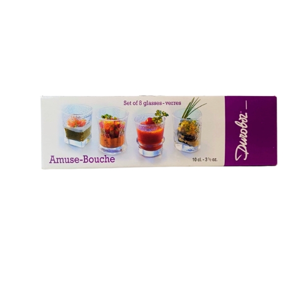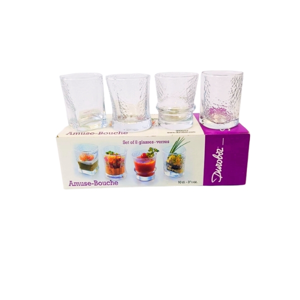 Caja de 8 vasos de aperitivo de cristal de cuatro modelos diferentes.